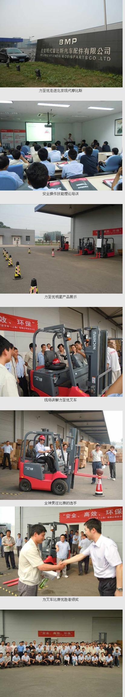 2012年6月19日,力至优叉车继续在北京市开展客户巡展活动,虽然是炎炎夏日,气温已经飙升到37摄氏度,但活动中所有人员的热情没有受到炎热天气的影响,今天力至优将走进北京现代摩比斯汽车配件有限公司,客户对力至优和其明星产品的到来热烈欢迎并非常重视,客户出席活动的人员有65人,这是巡展以来人数最多的一次。