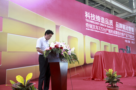 今天,我们共同见证了这一激动人心的时刻,它将永载奇瑞叉车的史册、永载奇瑞集团的史册、永载芜湖市社会经济发展的史册。奇瑞叉车将在芜湖市委、市政府和各级部门领导的大力支持下,在奇瑞集团的带领下,奋勇拼搏、开拓创新,以良好的经济效益和社会效益回报社会、回报芜湖人民和各界朋友的关心和厚爱!