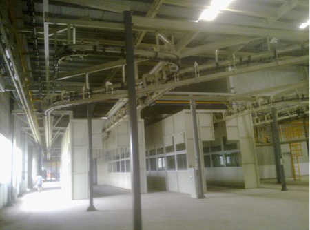 为严格贯彻执行国家劳动安全卫生和环境保护方面的法律和规定, 使整个工程达到国家规定的“三废”排放标准、工业卫生标准和消防要求,奇瑞叉车联合厂房新增两条结构件涂装生产线,用于叉车车架系统、门架系统及护顶架、仪表架的涂装作业,另外针对配重补腻子、喷面漆的需求设计一条遵循物流通畅、布局合理的原则的配重涂装线,并注重设备的节能措施,合理使用能源。