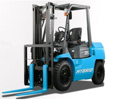 作为丰田叉车的母公司,丰田自动织机也率先将其混合动力技术运用在了其叉车产品上,2009年,丰田自动织机成功研发了世界上第一台内燃式混合动力叉车-HYBRID。它的动力源由柴油发电机,电动马达和HYBRID专用电池组成,在保障工作效率与同等柴油叉车相当的同时,其CO2的排放和燃料消耗只有同等柴油叉车的50%,生产到废弃的再生循环率达到99%!。
