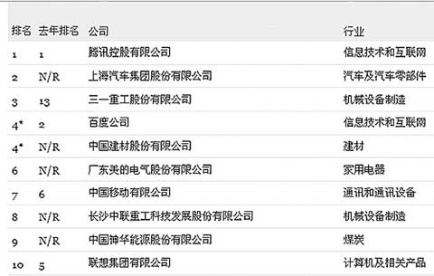 作为工程机械行业持续创新的代表,三一重工从去年的第13名大幅跃升至第三名。“三一这18年的时间从零开始,到中国第一、世界第六,最根本的原因就是创新,就是综合竞争力。”三一重工总裁向文波表示:“创新很难以利润来衡量。很难去计算它花了多少钱,也没有一个模板去计算它要经历一个什么样的过程,但是管理创新、技术创新、服务创新,它们加起来就是你的整体竞争力和盈利能力。”据悉,三一重工研发投入约占销售额的5%~7%,而世界一流的工程机械企业也不到4%的水平。