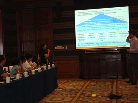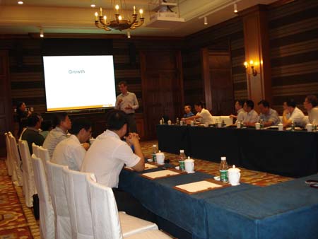 雷振皓先生在会议致辞中高度赞扬了叉车气业务今年以来取得的成绩,结合SHV集团在全球的业务经验,他对该业务的发展前景充满信心。常言道:知己知彼,百战百胜。随时掌握叉车市场最新动态,保持与叉车品牌商、经销商的密切沟通,是喜威叉车气业务持续增长的致胜法宝。8月22日的会议上,叉车行业的资深销售及技术顾问都与我们分享了新的产品和技术信息,让喜威找到了潜在业务增长点。可持续发展的业务需要有一支专业的销售及售后团队支持,销售技巧培训是年度会议必不可少的环节。这次培训以情景模拟的方式进行,由各公司业务员扮演叉车销售模拟客户拜访,江门公司销售总监崔涛和上海公司金牌销售陆毅经理扮演客户,同时对业务员的表现进行点评。通过模拟演练,业务员更真切地了解到叉车销售及客户的心理,懂得了在实际销售过程中如何打动客户的技巧。