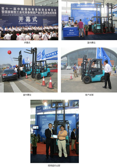 2012年9月1日-5日,第十一届中国国际装备制造业博览会在沈阳国际展览中心盛大开幕。来自美国、英国、德国、法国、俄罗斯、日本、韩国、意大利、瑞士等16个国家和地区及国内23个省、自治区、直辖市的982家企业亮相制博会。沈阳汇斯通携手宝骊叉车再次亮相制博会,充分展示德国独资品牌----凯傲宝骊叉车的实力。