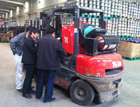 本次随同访问的数位天津客户在实地了解了天然气叉车的现场实际使用情况,特别获知与柴油叉车价格的性价比相差超过1倍以后,兴致很高昂。透过本次考察,天津客户近期计划将新车全部采购天然气叉车。