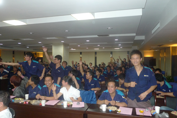 9月26日晚,浙江吉鑫祥叉车制造有限公司员工活动室灯火通明,歌声嘹亮。主题为“迎中秋、庆国庆”的联欢会在此隆重举行。公司副董事长陈云福、总经理王桂生、副总工程师刘洪培、董事长助理傅定军以及全体员工共计200余人参加,共同度过了一个狂欢的夜晚。