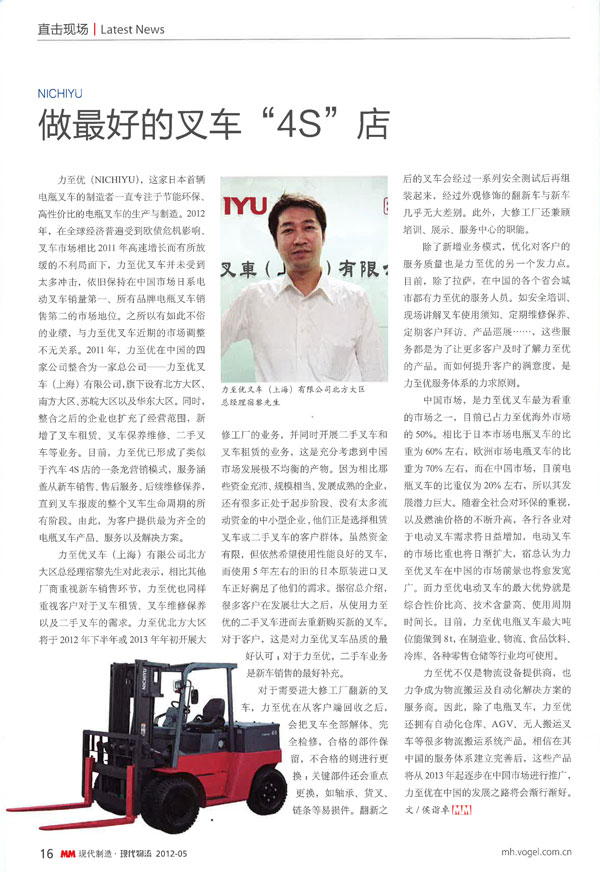 物流杂志专访力至优北方大区宿黎总经理-做最好的叉车“4S”店