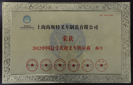 海斯特叉车作为全球领先的叉车设计与制造生产者,以其卓越的产品性能、为客户提供一站式服务的先进理念,在此次总评榜的评选过程中,一致获得专家评审团及各行业代表的青睐,一路过关斩将,最终荣膺此次总评榜中唯一一家物流装备行业的大奖:“2012年度最受欢迎叉车供应商”;这枚珍贵的奖项代表了海斯特叉车在进入中国的这十几年,秉承“我们专业我们用心”的理念、始终致力于给客户提供完整的物料搬运解决方案。我们的目标不仅是一家叉车供应商,同时在售后服务、配件供应、租赁、二手车、融资租赁、专业车队管理、培训等方面也提高高质量及专业的增值服务,从而建立操作费用最低的叉车时代。同时,此殊荣也意味着海斯特叉车在各行各业的广大中国用户中逐渐建立起来的良好的品牌信誉,已经越来越多地得到了客户的认可和信任。对海斯特来说,这更是一种鼓励,鞭策海斯特人更加积极地专注于我们的事业,解决客户的物料搬运需求,将“强悍的叉车”满足于各行各业客户的各类工况,从而成为客户“强大的伙伴”。