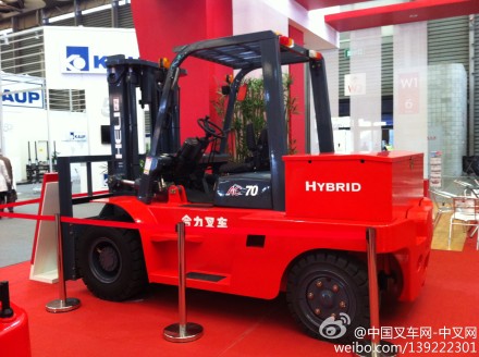 安徽叉车集团首次在2012亚洲国际物流展上正式展出国内最大吨位、首台具有自主知识产权的7吨电-电混合动力叉车,该产品填补了国产工业车辆在这一领域的市场空白