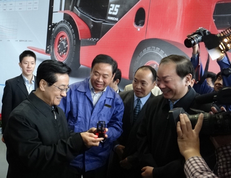 赵洪祝书记一行来到杭叉新落成的近2000平米的新产品展示中心,观看了公司介绍、发展规划、展厅陈列的新产品和零部件后,还饶有兴趣地坐上叉车进行了亲身体验,之后参观了新扩建的国家认可实验中心,赵书记在仔细了解了企业的经营状况、创新技术、产品开发等方面的情况后,对杭叉近年来注重有效投入,实现特色发展表示肯定,鼓励杭叉要坚持高端发展,突出科技特色,不断增强创新能力,使公司发展更多地建立在科技进步基础之上,早日实现进入世界前五强的目标。