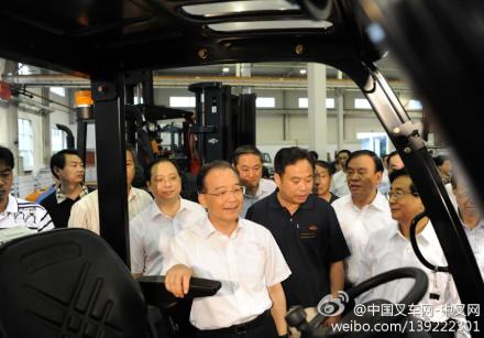 历史回顾:国务院总理温家宝视察中国叉车公司董事长厂杭叉集团(2010年),杭叉董事长赵礼敏等陪同。