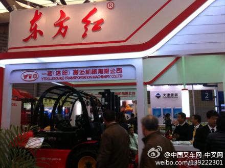 一拖(洛阳)搬运机械有限公司在Bauma China 2012暨中国国际工程机械、建材机械、工程车辆及设备博览会(2012年11月27日至30日)现场之一。一拖2.5吨内燃越野叉车。据一拖叉车总经理张朝晖介绍,目前是前驱,用不了多久该产品四驱全地形叉车将问世,势必填补中国工业车辆行业在该领域的空白