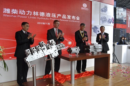 潍柴动力携十余款发动机及液压件产品亮相宝马展,并于11月28日上午10:30,在其展位上召开了“潍柴动力林德液压产品发布会”。出席发布会的嘉宾有:山东重工集团总经理江奎、潍柴动力执行总裁孙少军、山东重工集团副董事长董平、潍柴动力副总裁冯刚、伊顿液压亚太区总裁Mr. shyam、林德液压副总裁Thorsten Van der Tuuk、中国工程机械工业协会会长祁俊、中国工程机械工业协会秘书长苏子孟、中国液压气动密封件工业协会理事长沙宝森、中国液压气动密封件工业协会秘书长程晓霞等在内的多名高管。