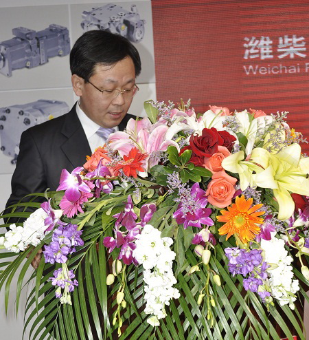 发布会由潍柴动力执行总裁孙少军主持,山东重工集团总经理江奎率先致辞,他首先介绍了潍柴动力战略重组德国凯傲林德液压项目的情况。其后他在致辞中说道:通过发挥双方在产品和技术上的互补性,双方都可以充分利用尚未开发的市场潜力,不断扩大自身规模,更好地适应不断变化的市场环境和日趋激烈的竞争格局。无论是工业叉车还是液压业务,都将从潍柴动力在发动机和驱动技术领域的专业技术中极大地获益。本次合作是企业未来五年实施全球化战略和扩大新市场、新产品业务活动的重要一步。通过适应性开发合作,潍柴动力能快速掌握全球领先的高端液压技术,实现在工程机械、农业机械、游艇、宇航等多领域的全面突破,迅速占领液压行业的制高点。此外,通过对凯傲集团25%的股权投资,可以实现与山东重工叉车业务的协同,提升山东重工叉车的技术水平、质量水平和工艺水平,主导亚太业务的实现。我们相信,这个项目必将加快潍柴“打造全球领先、拥有核心技术、可持续发展的装备制造集团,进入世界500强企业”的步伐。