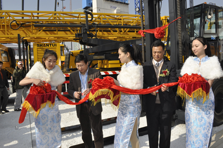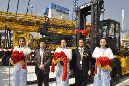 27日上午10点28分,伴随着山推展位上响起的动感音乐“山推叉车新产品发布会”正式开启动,中外客商及国内外40多家专业媒体共同鉴证了山推机械新成果展示。山东重工集团副总经理、山推机械公司董事长谢树敏、山推机械公司党委书记兼总经理高腊生,首先为此次推出的山推SF160重装叉车剪裁,随后山推机械公司副总经理倪令华就SF160重装叉车的技术优势向与会观众做了简要介绍。发布会结束后山推机械主要领导还就此次展会的情况接受了国内多家媒体的采访。整个发布会布置简洁大方,现场气氛热烈,一度成为展会现场关注的焦点。