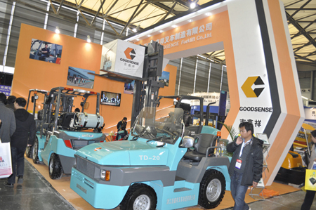 在本次展会上,吉鑫祥以独特的展台设计,桔红色的场地,让最新研发的浅蓝色叉车色调格外抢眼。据吉鑫祥工作人员介绍,今天展出的产品仓储类叉车大部分都是新品,有AC20前移式叉车、AC15平衡重电动叉车全交流系统,无级调速,可靠性高。EPS电子助力转向,操作灵活等特点。另外还有电动堆高车、电动托盘叉车,最新研发的电动托盘叉车具有人力和电动两重功能,在电池动力不足时可以改为人力继续使用,减少因电力不足而造成的停工。电动托盘叉车在设计上别出心裁,受到不少观众的好评。以及升级版的10吨内燃平衡重叉车、液化气叉车、3吨平衡重叉车。另外,吉鑫祥还带来了TD-20内燃牵引车,此车采用进口引擎、四轮制动、独立悬挂式动力转向转弯半径小,舒适的操作性能、人性化的设计。到目前,吉鑫祥仓储系列产品更加完善,为开拓国内外市场提供有利条件。