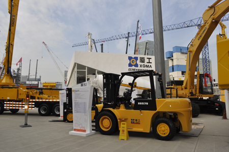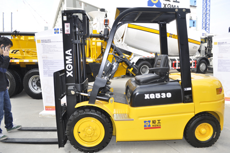 在厦工展会上有一款类似于越野叉车的产品,我们称它为轮式叉装机(又称条石叉)。该车型介于叉车与装载机相结合技术而研发的产品,主要应用于矿山、石材场地的专用车型。轮式叉装机在近年来得到快速发展,也符合市场的需求。厦工轮式叉装机依托厦工强硬研发技术,一经推出就受到客户好评。