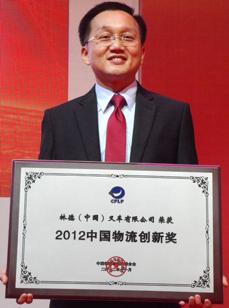 11月23日, 由中国物流与采购联合会主办的“2012(第十届)中国物流企业家年会”在厦门召开,令人期待的2012中国物流年度评选活动结果也在当晚的颁奖晚宴上揭晓,林德(中国)叉车有限公司榜上有名,喜获“2012中国物流创新奖”。该奖项充分肯定了林德(中国)积极进行企业内部管理和物流服务的创新,对传统的物流商业模式、服务产品等方面进行创新性改造,在推动中国物流设备技术发展上具备较强的创新能力。