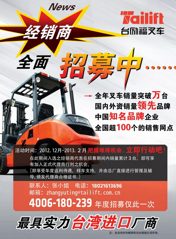 内容:在此期间入选之经销商代表在招募期间内销量累计三台,即可享有加入正式代理商行列之机会。