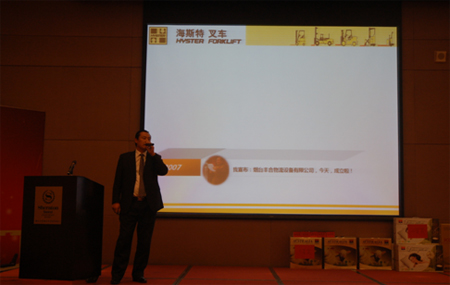 海斯特中国市场部吴经理为大家讲解了叉车知识及海斯特叉车的特点和主要技术优势;并详细介绍海斯特全面的测试平台和海斯特各种复杂工况的应用情况;通过介绍,客户对海斯特叉车的了解和信任更进了一步,对海斯特叉车的性能也是赞不绝口。