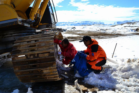 柳工技术专家廖焕敏李传洪抵达南极开始工作