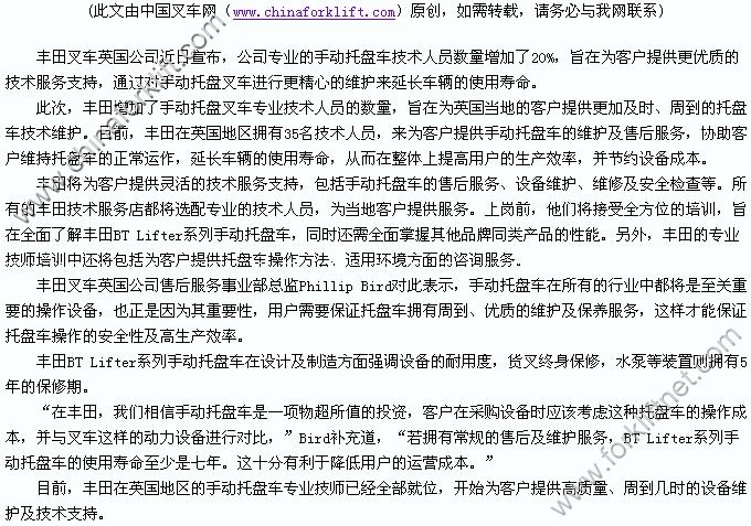 关于丰田自动织机(TICO): TICO是丰田集团的起源公司,成立于1926年,以生产自动织布机开始。产品涉及织布机领域,产业车辆领域,汽车领域,压缩机领域,发动机领域,半导体领域,液晶显示领域和加工中心领域等各行各业。其中,丰田叉车,喷气式织机和压缩机的市场占有率世界第一。丰田集团由丰田自动织机、丰田汽车、丰田通商等13个公司组成。公司的丰田物料搬运事业部全面负责丰田公司产业车辆与物流系统的生产与销售,在日本丰田L&F的标识,在各类产业的物流链中大放异彩。