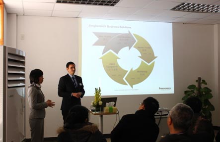 永恒力VG部门的Mikinari Oki先生为来宾介绍租赁和二手车业务