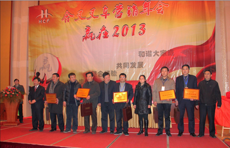 经销商年会在热烈的掌声中圆满落下帷幕。这是一次成功的年会,胜利的年会。通过年会让广大经销商更加明晰安徽合叉未来战略规划,也让公司与经销商零距离沟通,心连心,手牵手,开拓新市场,赢得新竞争,创造新未来,携手共赢2013。