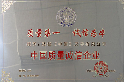 日前,中国出入境检验检疫协会(CIQA)正式公布了2012年福建省质量管理先进企业名单,并进行了表彰,林德(中国)叉车有限公司凭借丰富的质量管理经验、先进质量管理水平,荣膺“中国质量诚信企业”荣誉称号。此次能够获此殊荣,是中国出入境检验检疫局对林德(中国)孜孜不倦追求质量提升的最好肯定。