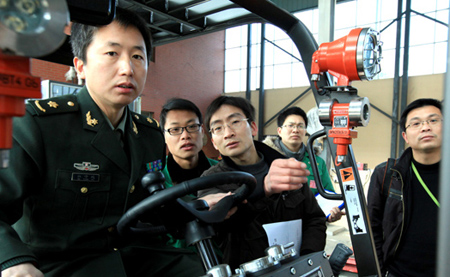 昨日上午,解放军某部组织技术专家来到如意公司,对该公司生产的防爆牵引车、防爆平衡重叉车等系列产品的质量和性能进行严格的检测验收。2012年下半年,如意公司接到这批军供产品订单后,立即组织精干力量,按要求加班加点进行生产,经过几个月的努力,终于保质保量按时完成了这批军供机械,为军队现代化建设作出了贡献。(记者李江林摄)