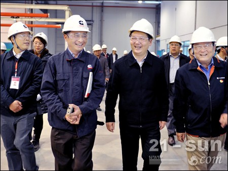 广西康明斯动力公司总经理辛力向肖文荪介绍说道,广西康明斯动力公司总占地面积6万平方米,项目总投资16亿元。新厂房2012年6月破土动工,目前一期投资的4万平方米新厂房正在进行设备的安装调试,以及厂区道路建设和四周的绿化美化。公司现有员工145名,这支团队大部分都是从柳工和康明斯公司(中国)招聘来的精英。辛力说,广西康明斯动力公司是康明斯在中国合资建设的第一家工程机械发动机工厂,从厂房的设计到工艺设备的配置,都严格按照康明斯全球工厂布局建设,工厂投产后将生产9.3升发动机和6.7升发动机配套柳工装载机和挖掘机产品。在公司产品形成规模后可实现年产发动机14万台,实现产值60亿元,员工也将达到1300多人。