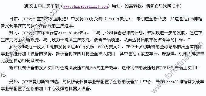 今天,JCB公司的全球总部是欧洲最独具匠心的建筑之一。60年来,公司从初始的单人作坊,发展成为拥有4000多名员工的跨国企业,在英国、美国、印度和南美洲拥有生产基地,生产160多不同型号产品。在150多个国家销售全系列产品。