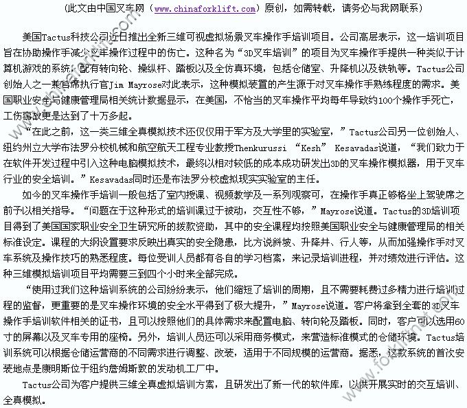 免责声明:中叉网(www.chinaforklift.com)尊重合法版权,反对侵权盗版。(凡是我网所转载之文章,文中所有文字内容和图片视频之知识产权均系原作者和机构所有。文章内容观点,与本网无关。如有需要删除,敬请来电商榷!)