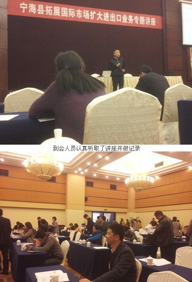 4月2日宁海县商务局在宁海开元新世纪大酒店举办了一场关于拓展国际市场扩大进出口业务专题讲座。