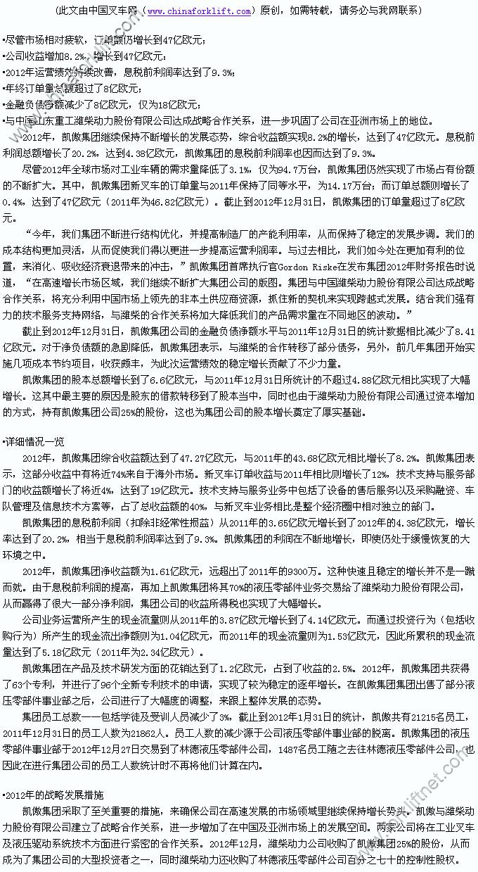 凯傲集团:完成预期目标,稳固行业地位