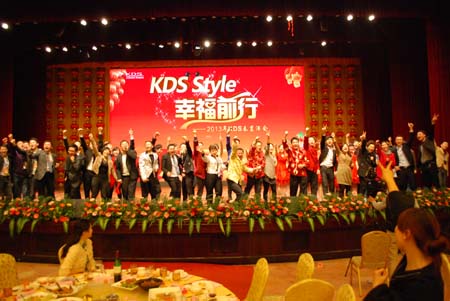 第一个登场的是N&H联队的小品-《笑解新规》,小品结合当下最严交通法规,“笑”果十足;财务,IT,大电机车间联队带来的舞蹈剧-《健康乐行》,变幻的LED屏幕充满未来感,炫酷吸睛。动感十足的音乐环绕全场,表演者们向观众们展示了不同运动带来的活力:IT-Forrest的轮滑表演惊险刺激,女生们的体操表演活力四射,向观众们展现了KDS蓬勃向上的青春活力以及企业一直提倡的“Enjoy Work, Enjoy Life”的生活理念;大专班学员给大家带来了小品剧-《大专班的那些事》,再现大专班学员们生活的点点滴滴,引发共鸣;总部与品质部联队舞蹈剧《一路有你》,以舞蹈的形式讲述工作过程中,团队成员间相互扶持,积极奋进的故事,感人肺腑,唤醒KDS人心底的温存。销售市场部及金工联队的小品剧-《KENNY的回忆》,故事以服务万里行为背景,通过几个场景的表演,向大家讲述KDS人在为客户服务途中,欢乐,辛酸,艰难的经历。其中泰国场景中,Kenny 在为泰国客户服务时,热辣奔放的《桑巴舞》渲染风情,极具舞台感染力,台下的观众不禁也跟随着动感十足音乐的节拍摇摆。而泰国人妖的反串着实成为了节目亮点之一,S&M人妖扮演者Jason成功的凭借着这一角色一举成名,成为众人拍照留念的参照人物;节目精彩不断,工程部与厂务工程联队表演的小品《家园*2102》,穿越时空,配合变化莫测的LED背景,演绎KDS在未来拯救世界,成为科技领头人的故事,给大家展现了未来的时代感,让人惊叹不已,引发大家对KDS未来发展的美好畅想和希冀。晚会当中穿插的幸运抽奖环节更是引爆了全场激情,呐喊声此起彼伏,热闹非凡。