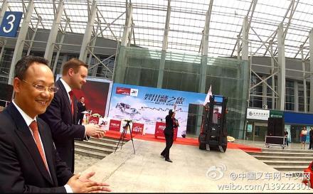 12点,林德(中国)总裁郭进鹏正式向3位挑战川藏318国道的林德叉车手下达出征命令。挑战川藏318国道的林德HT30叉车驶过起跑线,在两侧热烈的掌声和祝福语中,我们听到这样一句话:我们一定能安全抵达拉萨,40天后拉萨见!挑战川藏318国道的林德HT30叉车驶过起跑线,向雅安方向驶去。以每天正常行驶80-100公里的路程,除去一些外在因素,预计该叉车将在6月底抵达拉萨。