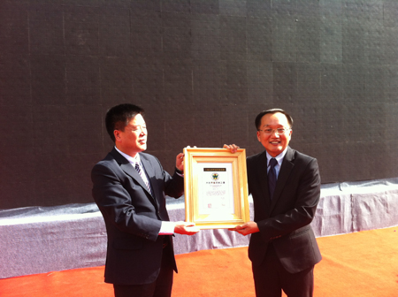 上海大世界基尼斯总部负责人向林德(中国)CEO郭进鹏颁发证书