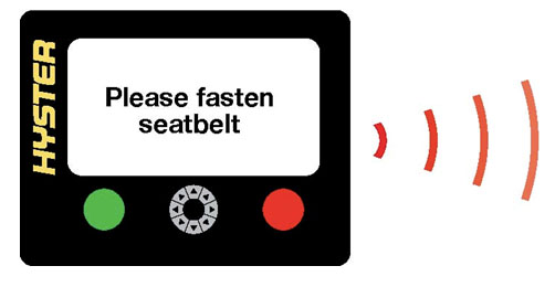 安全带佩戴提醒作为启动前的提示,有效地控制操作员在操作时必须佩戴安全带,如操作时解开安全带,系统将根据设置延时停机参数让叉车延时停机。