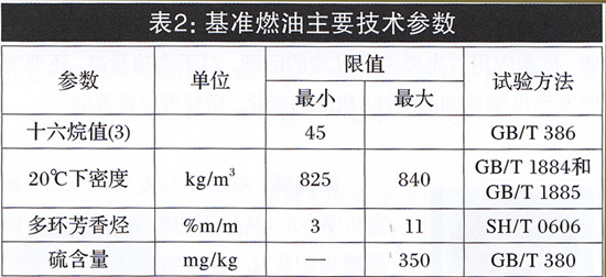 表2 基准燃油主要技术参数