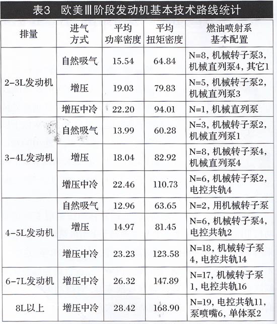 表3 欧美Ⅲ阶段发动机基本技术路线统计