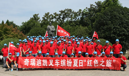 2013年7月1日,为了纪念中国共产党92岁的生日,奇瑞迪凯叉车组织员工参观了宣城市新四军军部旧址及査济古村落,共同缅怀革命先烈,展现爱国情怀;拂去城市喧嚣,感受古朴气息,为炎夏的心情撑一把悠悠绿伞,让工作之余的惬意在迪凯叉车静静延享。
