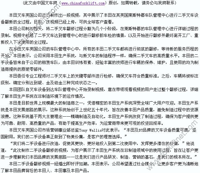 免责声明:中叉网(www.chinaforklift.com)尊重合法版权,反对侵权盗版。(凡是我网所转载之文章,文中所有文字内容和图片视频之知识产权均系原作者和机构所有。文章内容观点,与本网无关。如有需要删除,敬请来电商榷!)