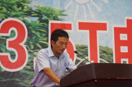随后, 比亚迪总裁王传福在致辞中讲到,很高兴能在这个美丽的山水城市韶关与大家相聚,共同见证比亚迪韶关的开园仪式,首先对韶关市领导及嘉宾媒体朋友的到来表示欢迎,目前国内的环保不容乐观,能源的过量消耗,过度的污染排放,环境污染严重已到了刻不容缓的地步。新能源产业将是未来发展的方向。比亚迪一直以来致力于开发绿色环保产品,减少对石油等不可再生资源的依赖。比亚迪以国际一流的电池起家并速度发展壮大,做到充电电池全球市场份额第一。比亚迪自主研发全球首创的铁电池技术,已成功应用电动汽车,世界多地都有比亚迪电动汽车的身影。比亚迪掌握了动力电池、电池管理等核心技术优势。也是基于铁电池的众多优势和市场的需求,2010年比亚迪正式进入工业车辆行业,自面世以来也现体了鲜明的环保优势,优越的性能,得到了市场的认可和众多客户的赞美。比亚迪成熟的技术平台,是比亚迪叉车最强大的支持。目前已实现量产,集各方面的优势,势必将引领国内电动叉车市场的变革。与国内同类叉车相对比,比亚迪搭载的铁电池动力叉车具有高效率(充电效率超过98%,可进行100%DOD深度放电);长寿命(在正常的充放条件下,循环使用4000次后,其容量保持率大于75%,电池使用寿命长达10年以上,电动叉车在生命周期内不需要更换电池。);高性能(在零下40度零上60度的高低温工作环境中,铁电池都具备良好的性能表现,无需在不同温度下配备不同的电解液浓度,适用领域远远大于铅酸电池);免维护(比亚迪电动叉车铁电池全封闭包装,无需人工维护和保养,不需要定期加注电解液,通过电源管可定期监控电池,其核心优势在于不公减少人工维护,同时避免不当维护对电池造成的损害)。零污染(在生产过程中无重金属污染,使用过程式中无污染、无排放;符合ROHS环保规定;充电过程中不产生酸雾;生命周期结束后,电池还可以回收用于储能)。是真正意义的绿色环保产品,优为适用于医药,仓库,物流等行业。把比亚迪领先的技术优势运用到比亚迪电动叉车上,得到更广泛的使用范围。实现比亚迪环境效益和经济效益双丰收。相信通过各方努力比亚迪叉车将成比亚迪实业一个新的增长点。再次感谢各位领导嘉宾的到来。