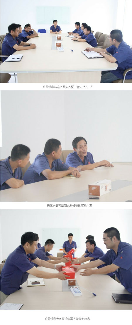 为庆祝中国人民解放军建军86周年,合叉公司于8月1日下午召开退伍军人座谈会,总经理张林、总工程师高林寒、党总支书记张璐及全体退伍军人参加了座谈会,会议由党总支书记张璐主持。