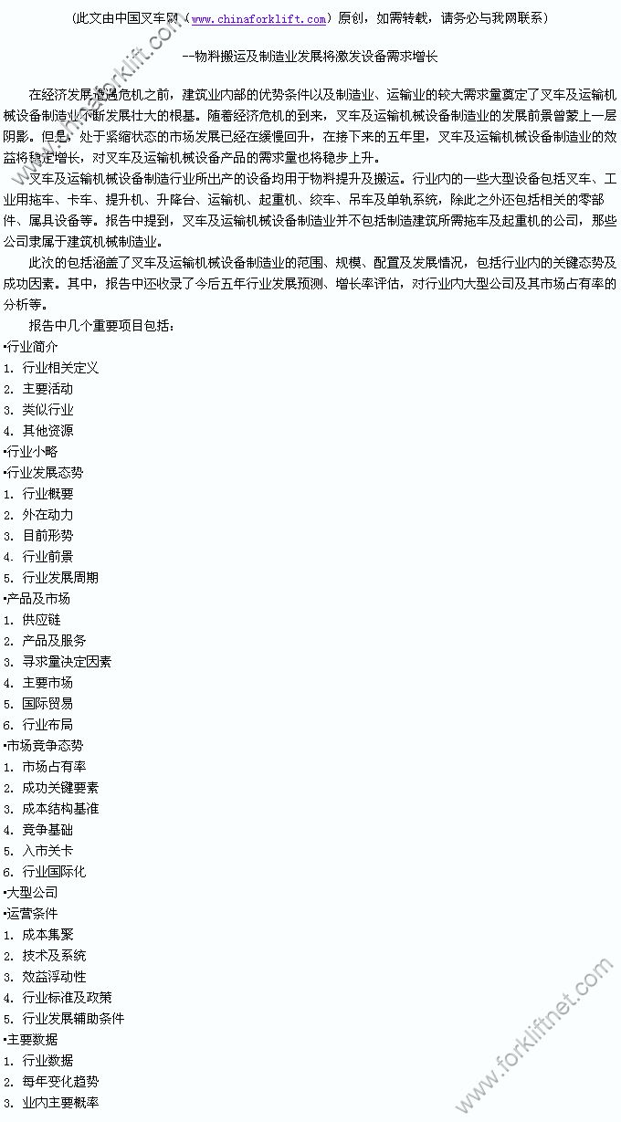 2013年美国叉车及运输机械设备制造行业报告:需求量稳定增长