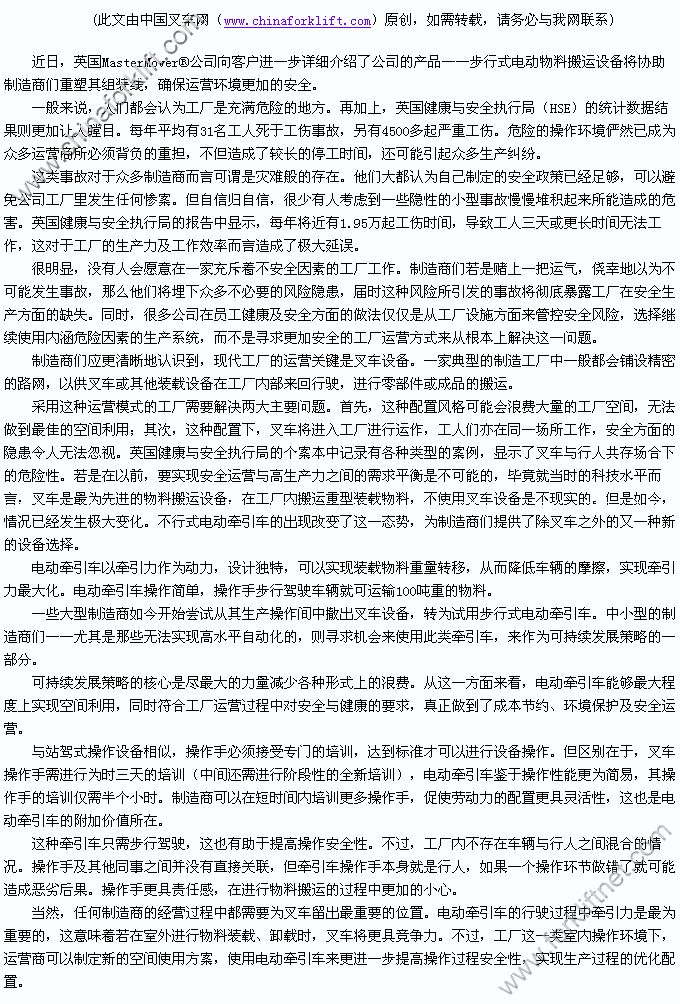 免责声明:中叉网(www.chinaforklift.com)尊重合法版权,反对侵权盗版。(凡是我网所转载之文章,文中所有文字内容和图片视频之知识产权均系原作者和机构所有。文章内容观点,与本网无关。如有需要删除,敬请来电商榷!)