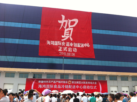 海鸿冷库位于乌鲁木齐经济技术开发区(头屯河区),项目总投资约20亿元,占地500亩,总建筑面积约60万平方米。此次启用的10万吨冷库,包括5万吨国际标准冷库和5万吨清真冷库,都属于新疆海鸿国际食品物流港项目,该项目是以食品冷链为核心,集食品加工、仓储、展示、贸易、配送为一体,不仅是新疆规模最大单体冷库,也是西北地区规模最大的单体冷库,项目分三期开发,后期还将建设5万吨保鲜库、5万吨常温库。