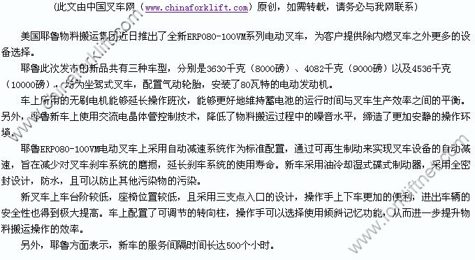 美国耶鲁物料搬运集团是美国著名的叉车制造商北美纳科集团的子公司之一.它在美国、欧洲亚洲澳大利亚都有制造厂,1995年共生产、销售6.9万台叉车,主要是电动叉车内燃叉车、仓储用叉车和集装箱周转用叉车。集团核心目标是成为世界上重要的叉车和零部件供应商。