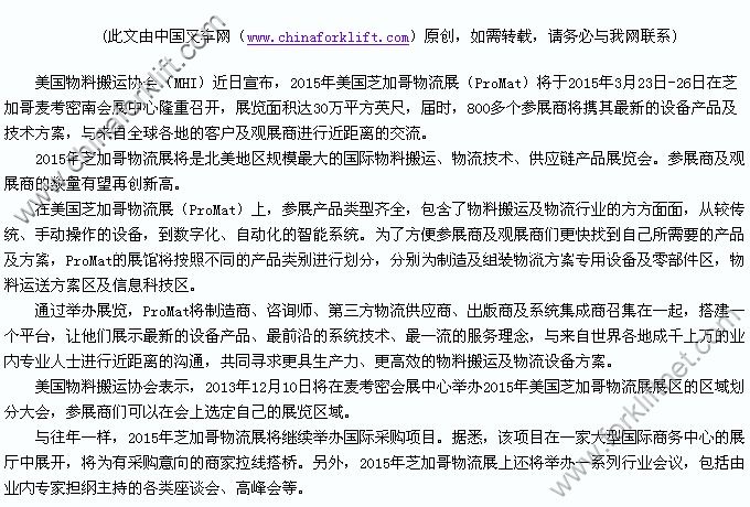 2015年美国芝加哥物流展ProMat定于3月份召开