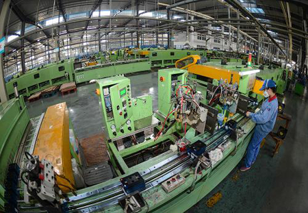 8月28日,工人在天能循环经济产业园内的全自动蓄电池装配生产线上作业。这个生产线日产5000只电池,比传统装配线能耗降低56%,人员减少80%。位于浙江长兴的天能循环经济产业园总投资达18亿元,引进世界先进的全自动生产线,将废铅酸蓄电池的再生利用达到最大化,同时整个生产过程实现零排放。该生产线从2012年开始进行试运行,实现年回收处理15万吨废旧铅酸蓄电池,产出再生铅10万吨,再生塑料1万多吨和近两万吨的硫酸钠,回收材料全部可以再利用生产出新的蓄电池,实现了资源的循环利用。浙江省长兴县的铅蓄电池企业产值占据国内同行业的“半壁江山”,据统计,2012年长兴蓄电池产业产值达到220亿元,占全国产值60%。